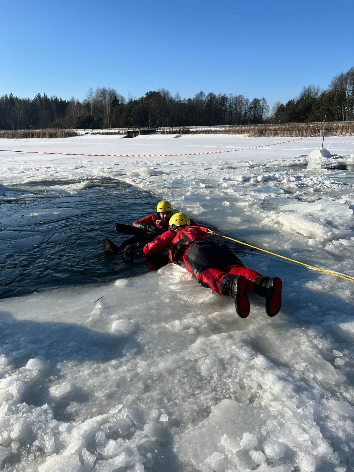 Ćwiczenia obejmowały m.in. techniki bezpiecznego poruszania się po lodzie, samoratownictwo oraz podejmowanie osób poszkodowanych.